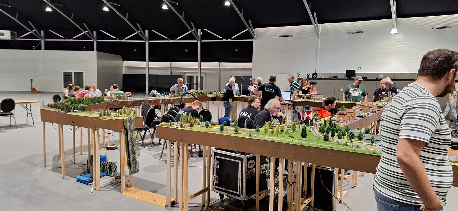 Am Freitag wurden dann alle Module aus dem Klubraum in die Muschel gebracht und aufgebaut. Samstag fanden wir dann doch ein paar Probleme, die leider nicht direkt behoben werden konnten. Somit musste beim Fahrbetrieb am Sonntag Vormittag das Gleisdreieck manuell bedient werden.